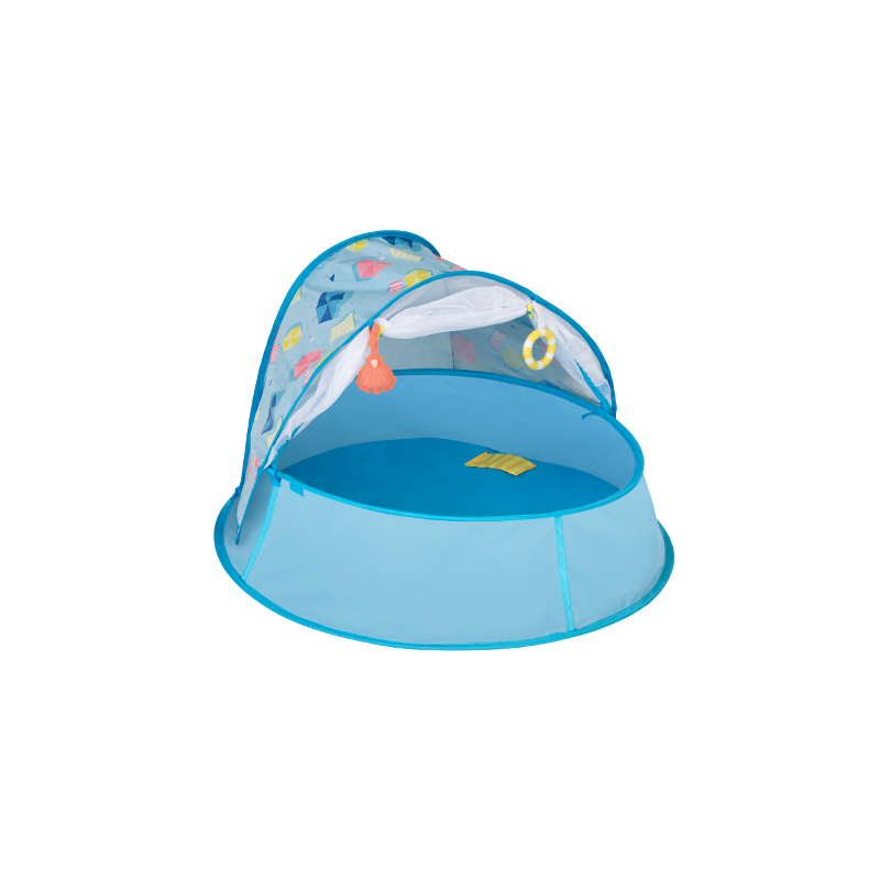 cette tente arrête jusqu'à 99% des rayons nocifs du soleil (uva et uvb) avec sa toile fps 50+. elle protège aussi du vent, du sable et des insectes avec sa moustiquaire