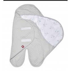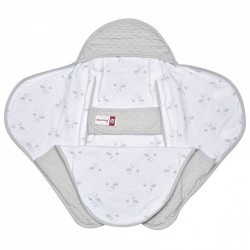 Munie d'une petite capuche, la couverture babynomade, avec ses fermetures par velcros, permet d'envelopper bébé sans le déranger.