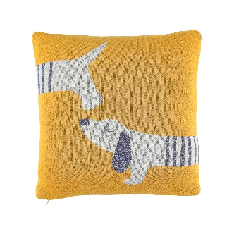 Posé sur le lit, sur une commode ou tout simplement par terre, ce coussin décorera la chambre de votre petit bout. Il pourra servir d'oreiller avec sa matière douce et bio, de compagnon de câlin ou simplement de déco. Alors craquez pour ce petit chien à croquer !